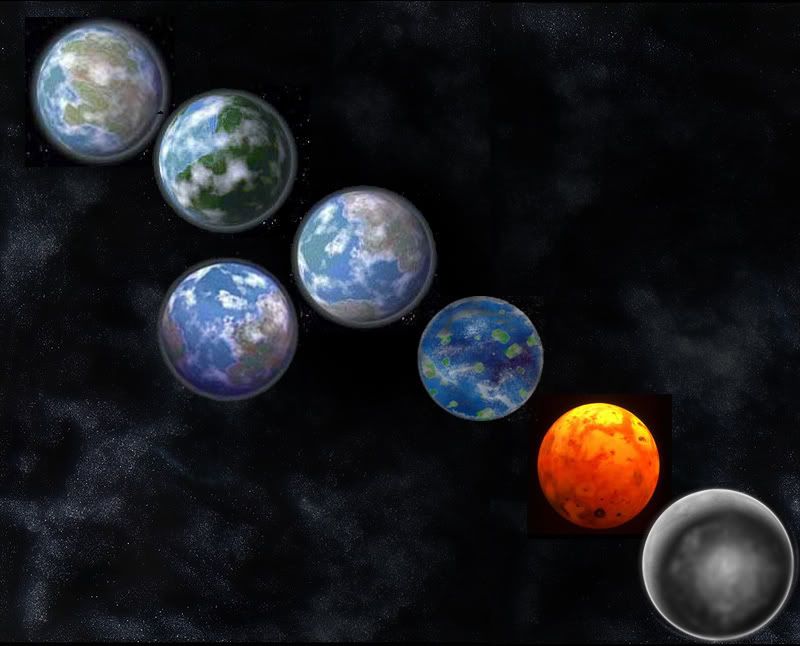 (podoba planet, z leva: Corellia Drall, Talus a Tralus, Selonia, Crolia, Soronia)